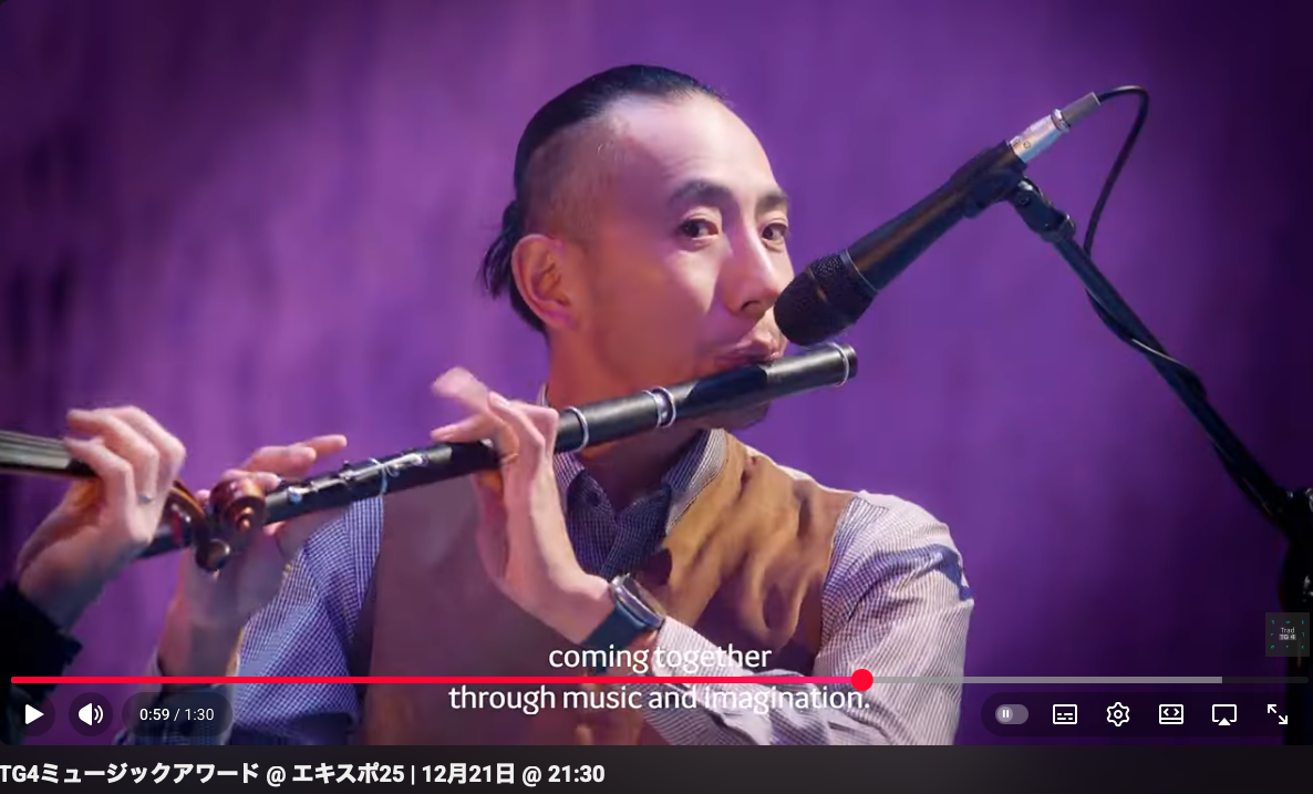 2025年9月、大阪Expoで開催されたアイルランドのGradam Ceoil(アイルランドの国営放送RTEが毎年伝統音楽分野の中から表彰する賞)の受賞者と日本人アーティストのコラボコンサートに出演。RTEがつくる12/21公開のドキュメンタリーに出演。