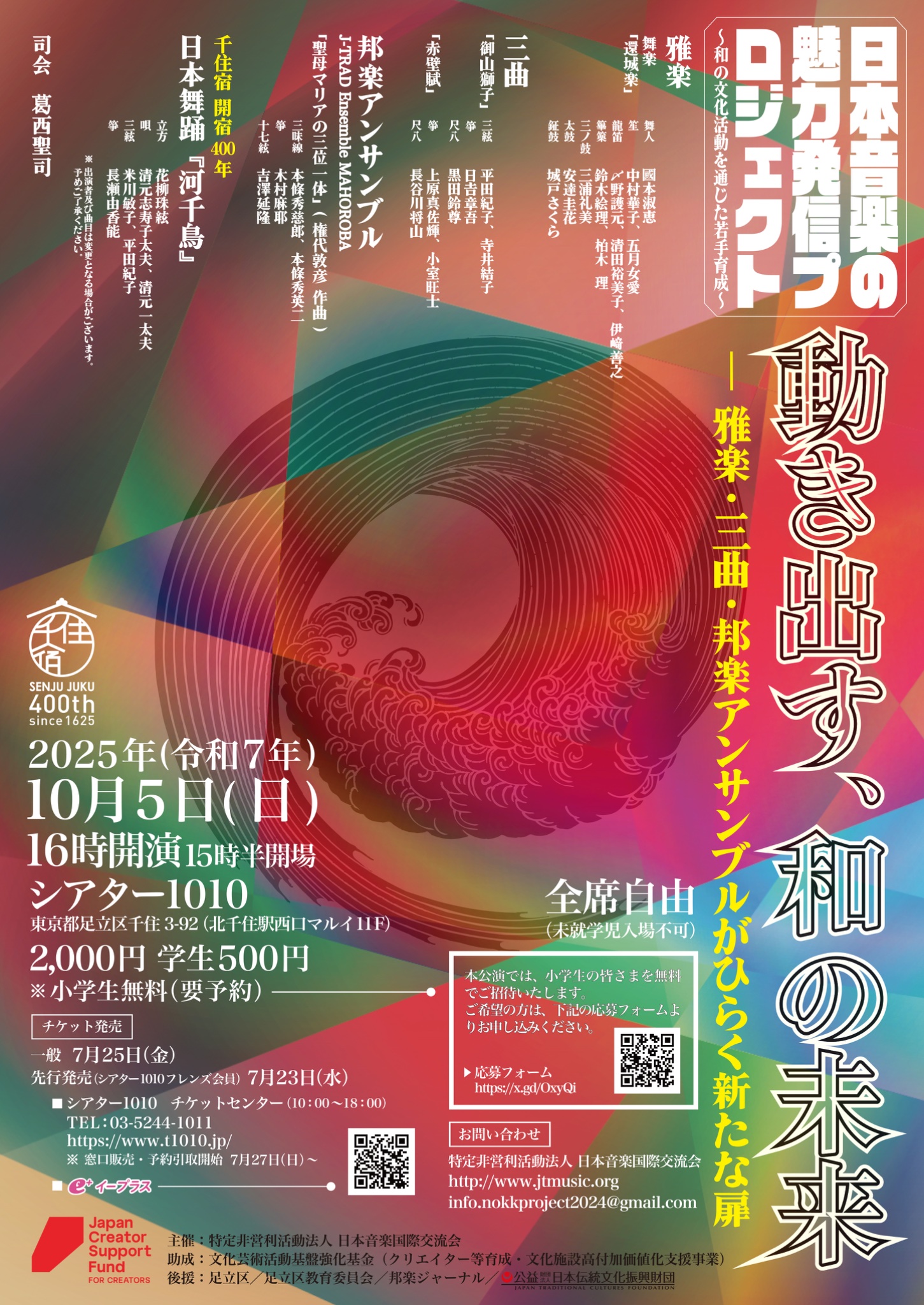 The CD “Imagine Peaceful Moments” featuring Gagaku instruments, traditional Japanese instruments, and electronics is now available at Tower Records, HMV&BOOKS online, Amazon, and Rakuten Books.